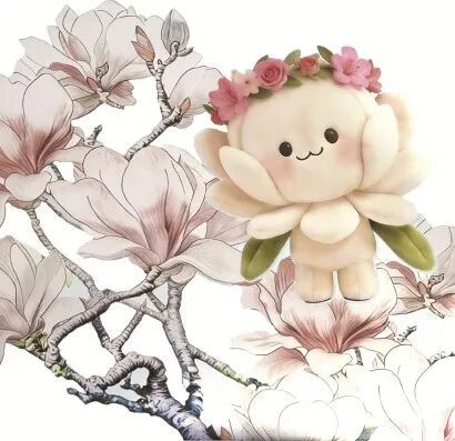 市绿化局为本次活动设计的现场展板上有一处“白玉兰花宝宝”图案,在视觉上有毛绒玩偶的质感,憨态可掬,很受市民欢迎。