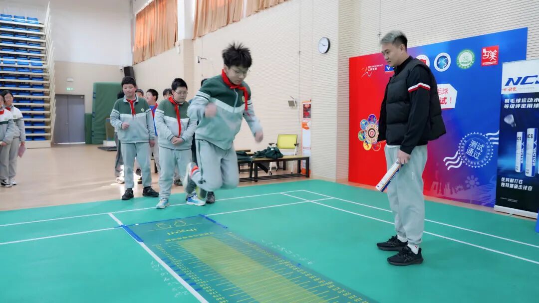 在随后的羽毛球等级评定现场,小球员们个个精神饱满、全神贯注投入测评。
