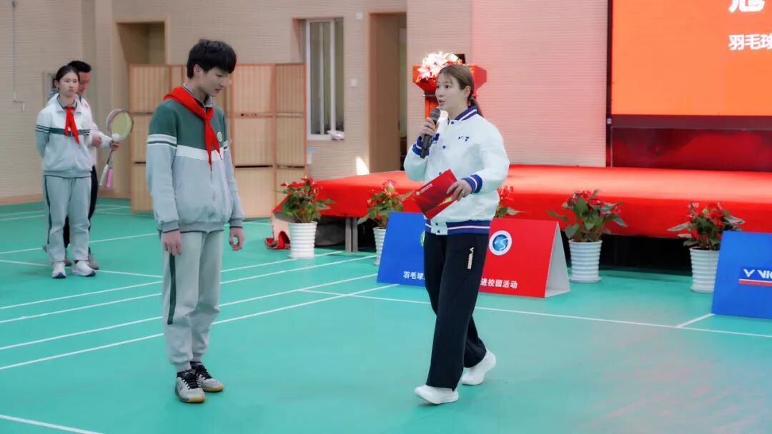 答对问题的同学获得了冠军亲笔签名球衣,在欢乐的氛围中加深了对羽毛球运动的理解与热爱。拿到签名球衣的同学激动地说:“我以后也要像雅琼姐姐一样,好好练球!长大后为国争光。”