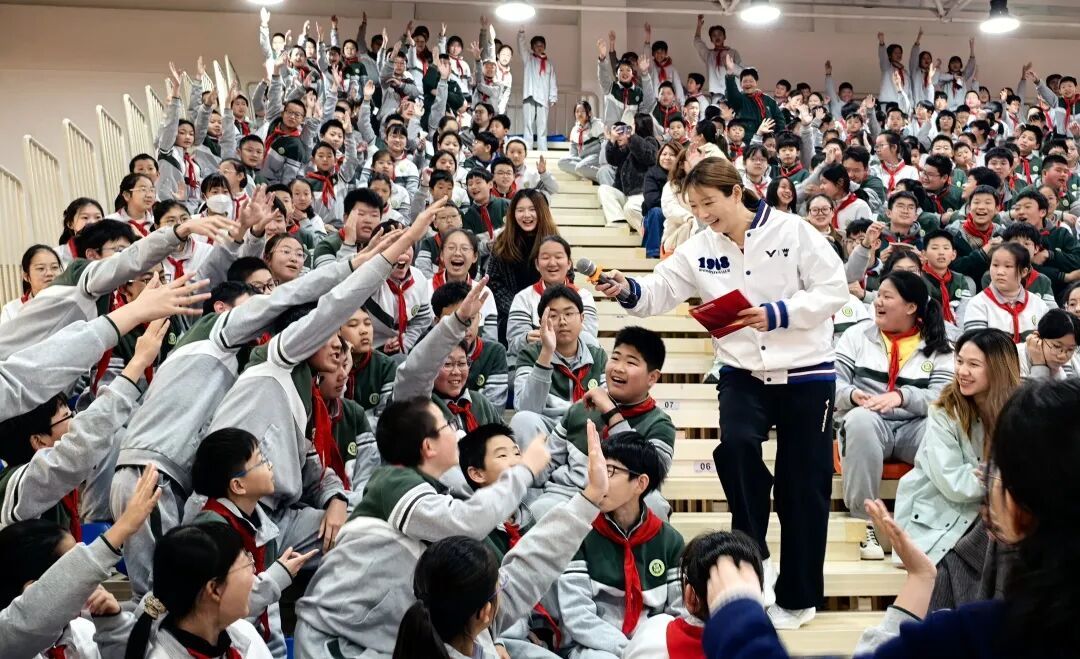 作为2024年巴黎奥运会羽毛球混双冠军、2025年第十五届全运会羽毛球混双金牌得主,黄雅琼一出现在古美学校体育馆,现场瞬间沸腾。“是黄雅琼姐姐!”“哇!雅琼姐来了!”——同学们的欢呼声,瞬间点燃全场。
