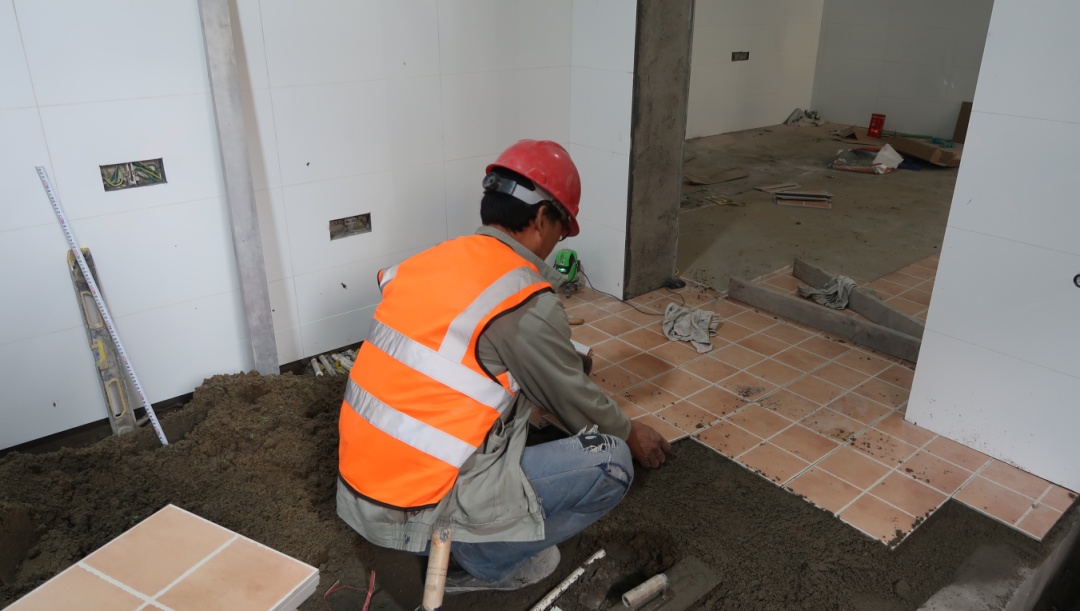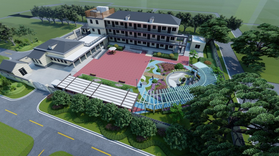 据项目经理胡晓江介绍,该项目总面积约1387平方米,目前整体进度完成80%。室外正在进行雨污水管、景观车棚及廊架的施工。