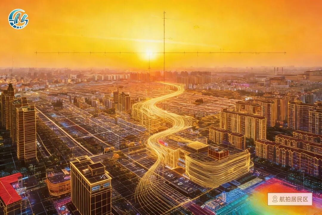 城市楼宇在晚霞中舒展筋骨,暖金向量线与分段函数曲线勾勒出错落轮廓,蜿蜒河道化作坐标轴与参数方程组成的流动几何。落日暖光被量化为渐变的色值数据,每一组矩阵都镌刻着城市生长的印记,这是正在运行的城市生长算法,让都市肌理在数学演绎中展现蓬勃生机。
