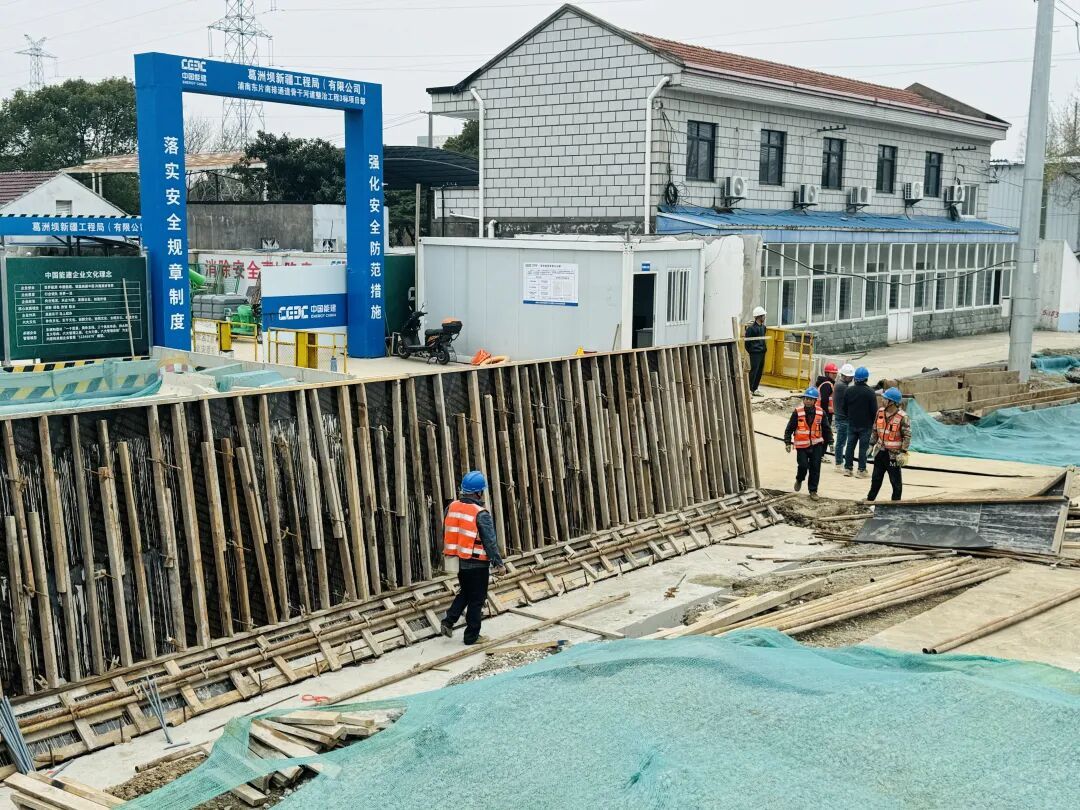 3月24日上午,记者来到浦南东片南排通道骨干河道整治工程三标段看到,机器轰鸣声此起彼伏,头戴安全帽的施工人员正在紧张作业中。