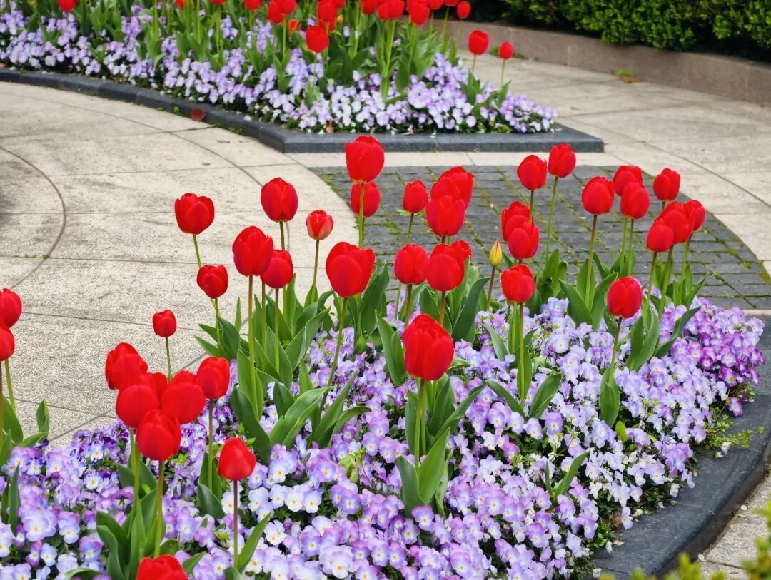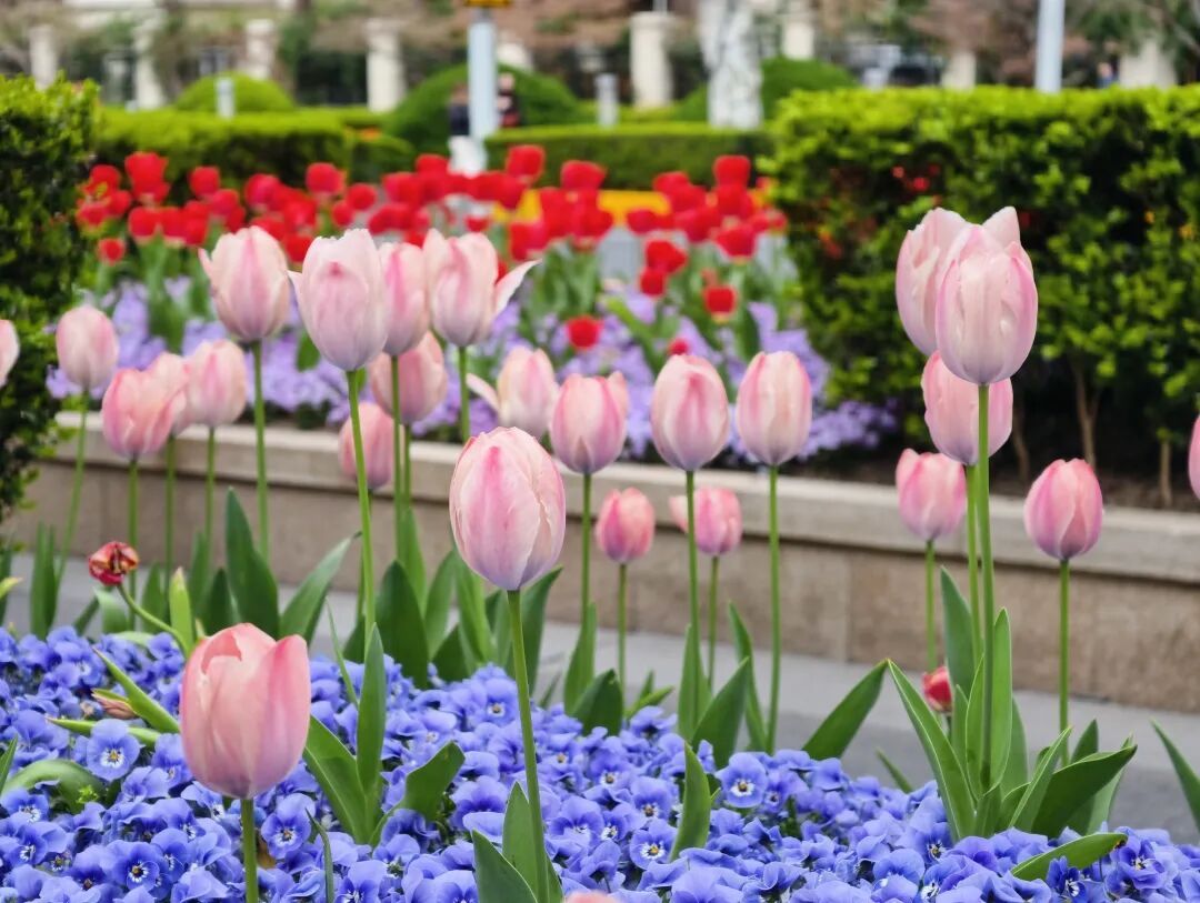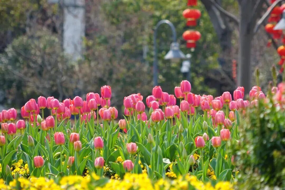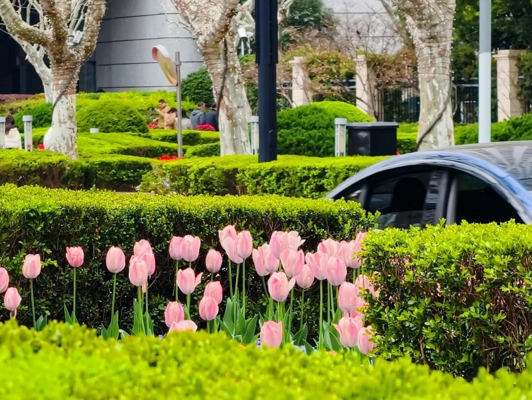 静安各处的郁金香相继盛开,红色系热情洋溢,粉色调温婉动人,橙色明媚亮眼……它们不喧宾夺主,却恰到好处地为城市增添了生动的注脚。繁华的街道与柔美的花卉相互赋能,让步履匆匆的行人忍不住放慢脚步,在此停留,享受春天。