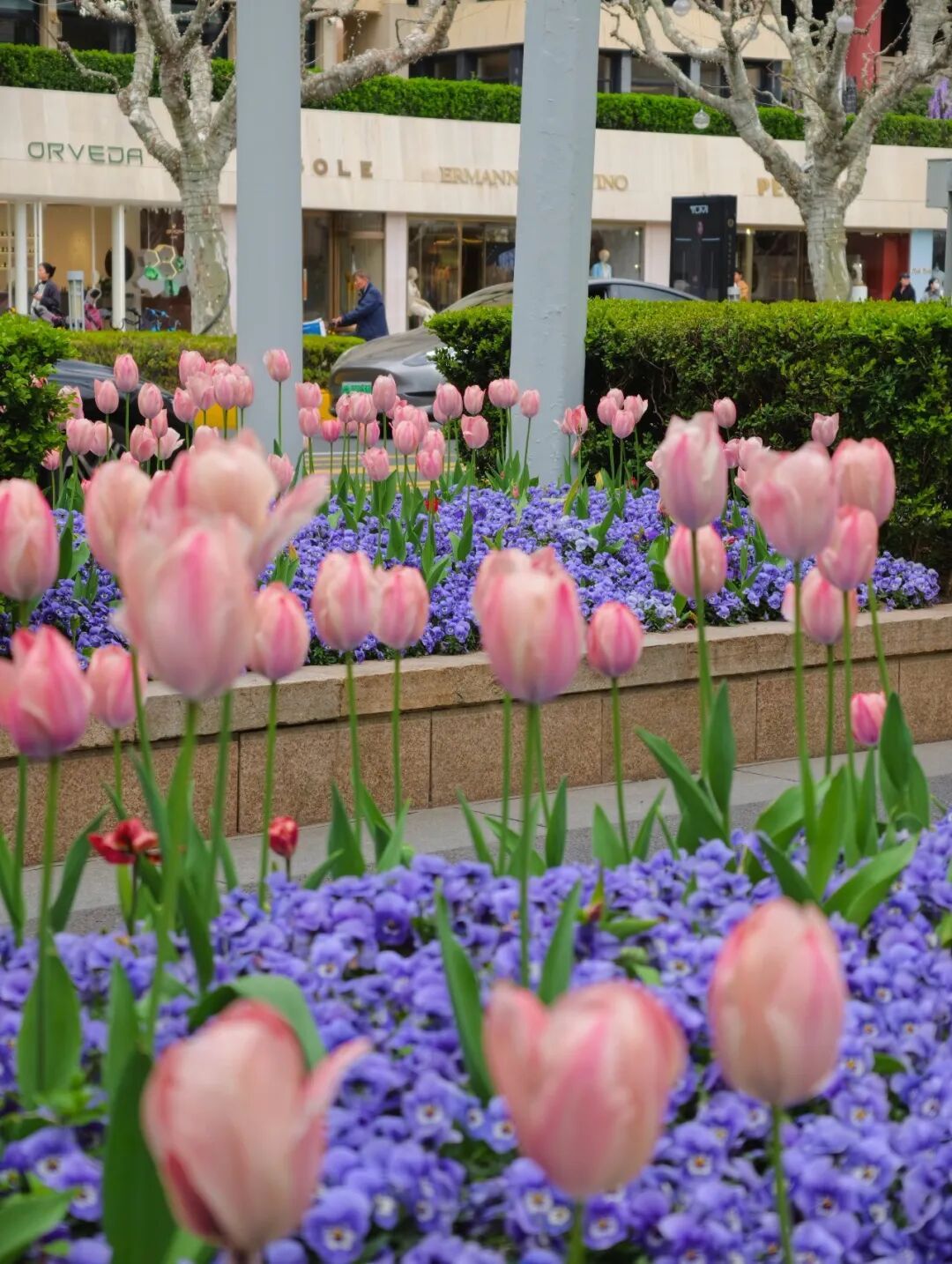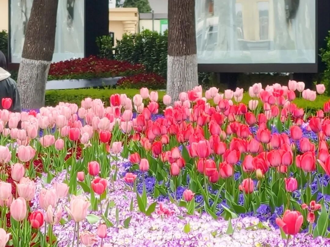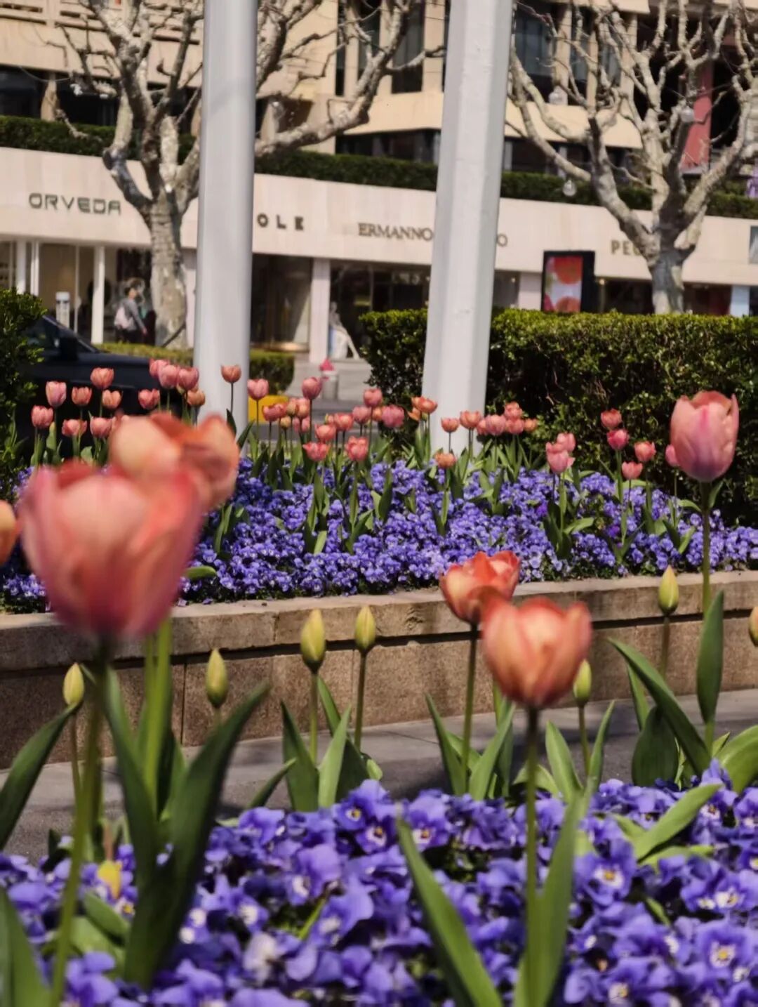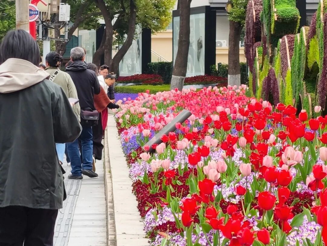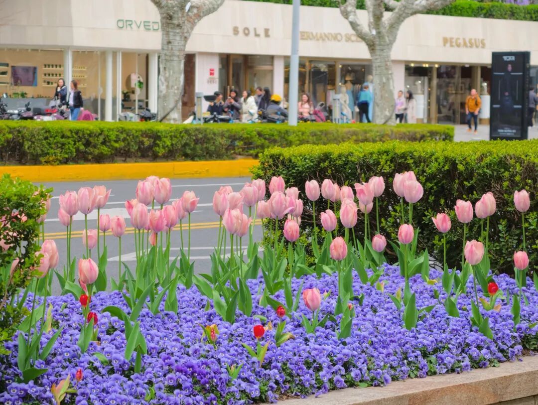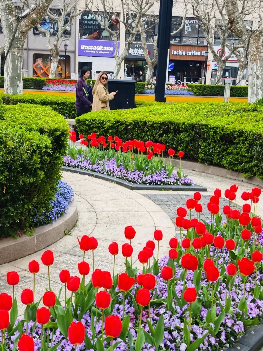 全上海最繁华的马路之一,南京西路,每年春天都会迎来一场温柔的变身。这里沿线商场云集,时尚橱窗与摩天楼宇勾勒出都市天际线。而街面绿化带里的郁金香,早已成为南京西路及周边区域每年春天如期而至的约定。