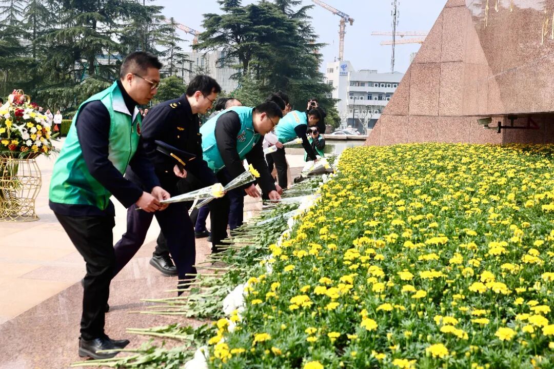 上午十时整,仪式正式开始。参与活动的党员和群众代表整齐列队于烈士纪念广场。在庄严的氛围中,向革命烈士敬献花篮,并仔细整理花篮缎带。随后,全体人员肃立默哀并行鞠躬礼,在纪念碑前献上鲜花,深切表达对英烈的崇高敬意和无限追思。