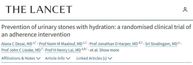 3月21日,国际顶尖医学期刊《柳叶刀》发表的一项迄今为止规模最大的肾结石补水干预研究显示:即便通过干预让患者多喝水、尿量增加,也没能降低肾结石复发率。