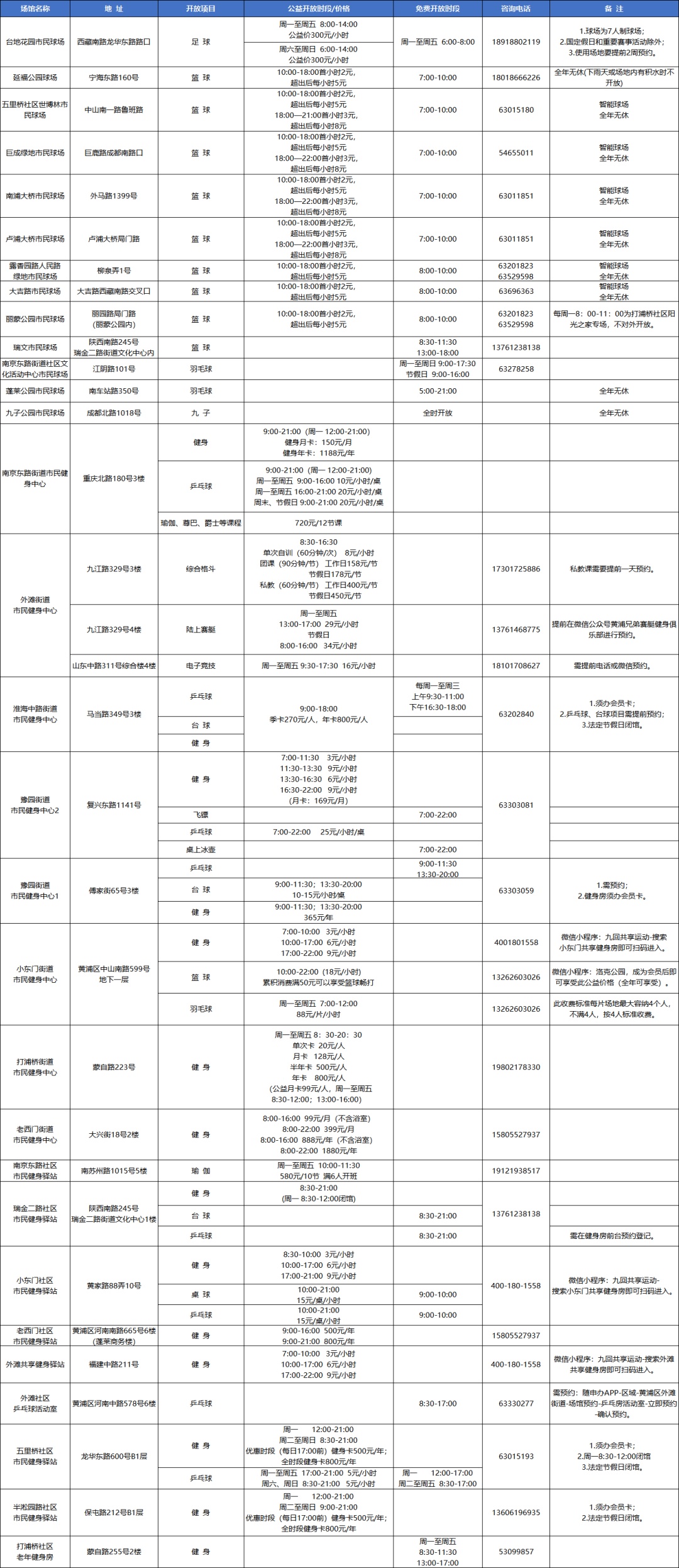 (四)黄浦区社区公共类体育场馆公益开放一览表