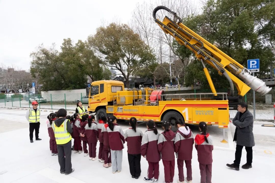 活动现场,工作人员依托大型防汛泵车开展积水处置实战演练,先详细讲解设备构造、工作原理及性能优势,再现场演示积水抢排全流程,让学生直观感受防汛装备在城市防汛工作中的关键作用。讲解员带领学生沉浸式参观雨水泵站收集区、机房、出水口三大核心区域,详细讲解集水井、格栅除污机、水泵等防汛设施功能,梳理雨水从落地到汇入河道的全流程,并通过趣味互动形式,让学生直观理解城市排水系统运行原理。