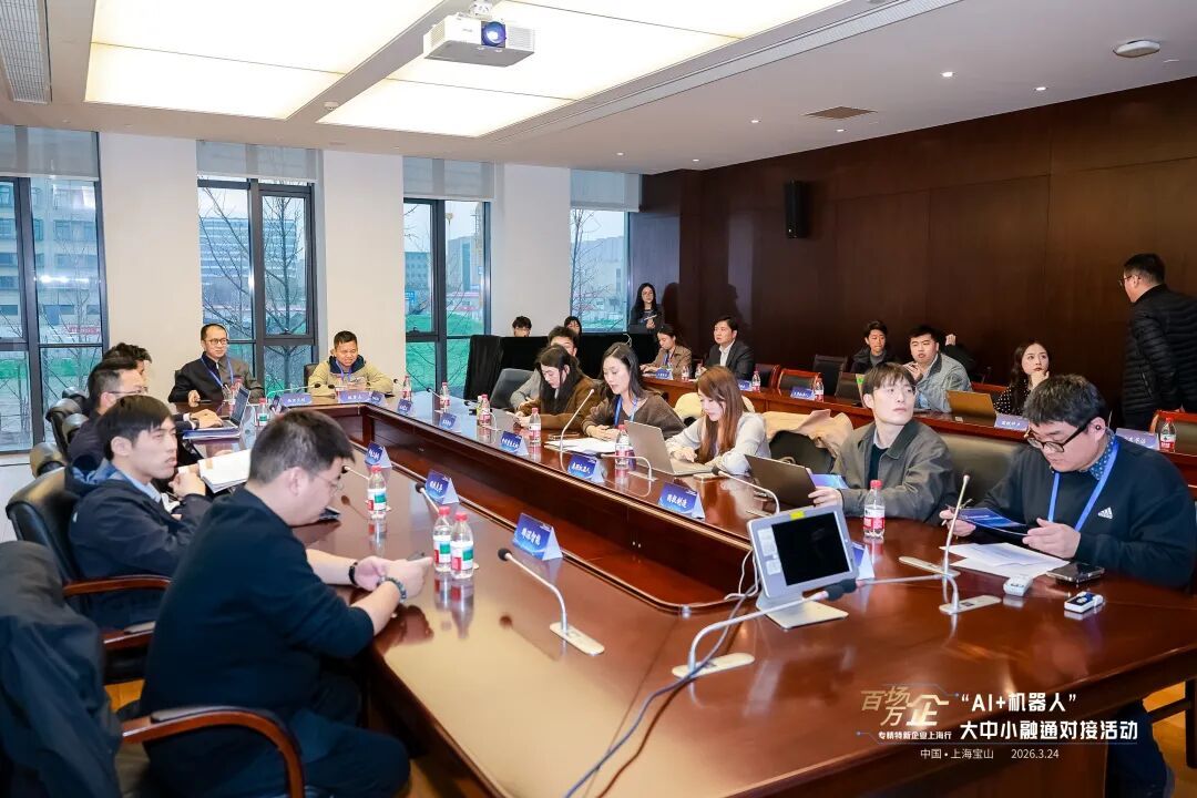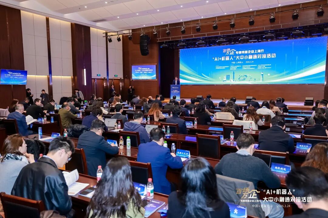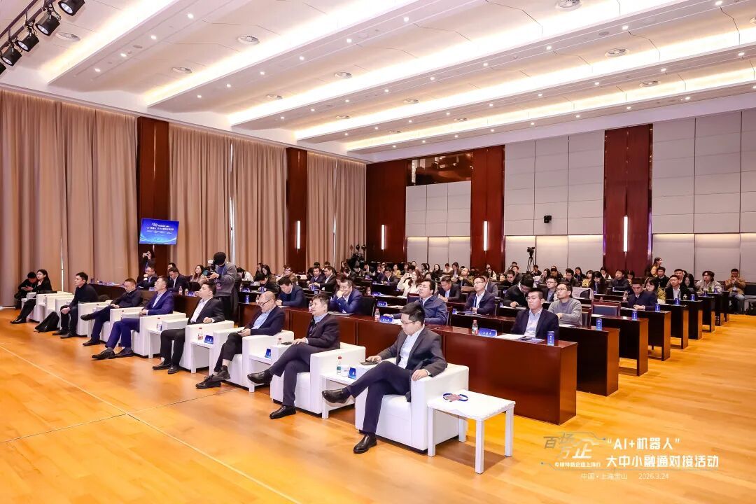3月24日下午,“百场万企”全国专精特新企业上海行·宝山专场“AI+机器人”大中小融通对接活动在上海机器人产业园成功举办。该活动由工业和信息化部中小企业发展促进中心、上海市经济和信息化委员会主办,宝山区经济委员会、宝山区顾村镇人民政府等单位承办。上海市经济信息化委副主任蒲亚鹏,宝山区委常委、副区长王鼐,上海国投副总裁许业荣等出席活动并致辞。来自全国AI和机器人领域企业代表、投资机构代表齐聚现场,共话“AI+机器人”产业发展新机遇、共探大中小融通新路径。