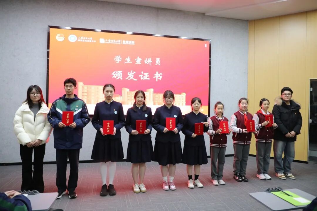 与会学校团委书记、大队辅导员为青少年历史文化传播宣讲员颁发证书,激励学生扛起乡土文化传播责任,用青春声音讲好家乡历史与教育故事