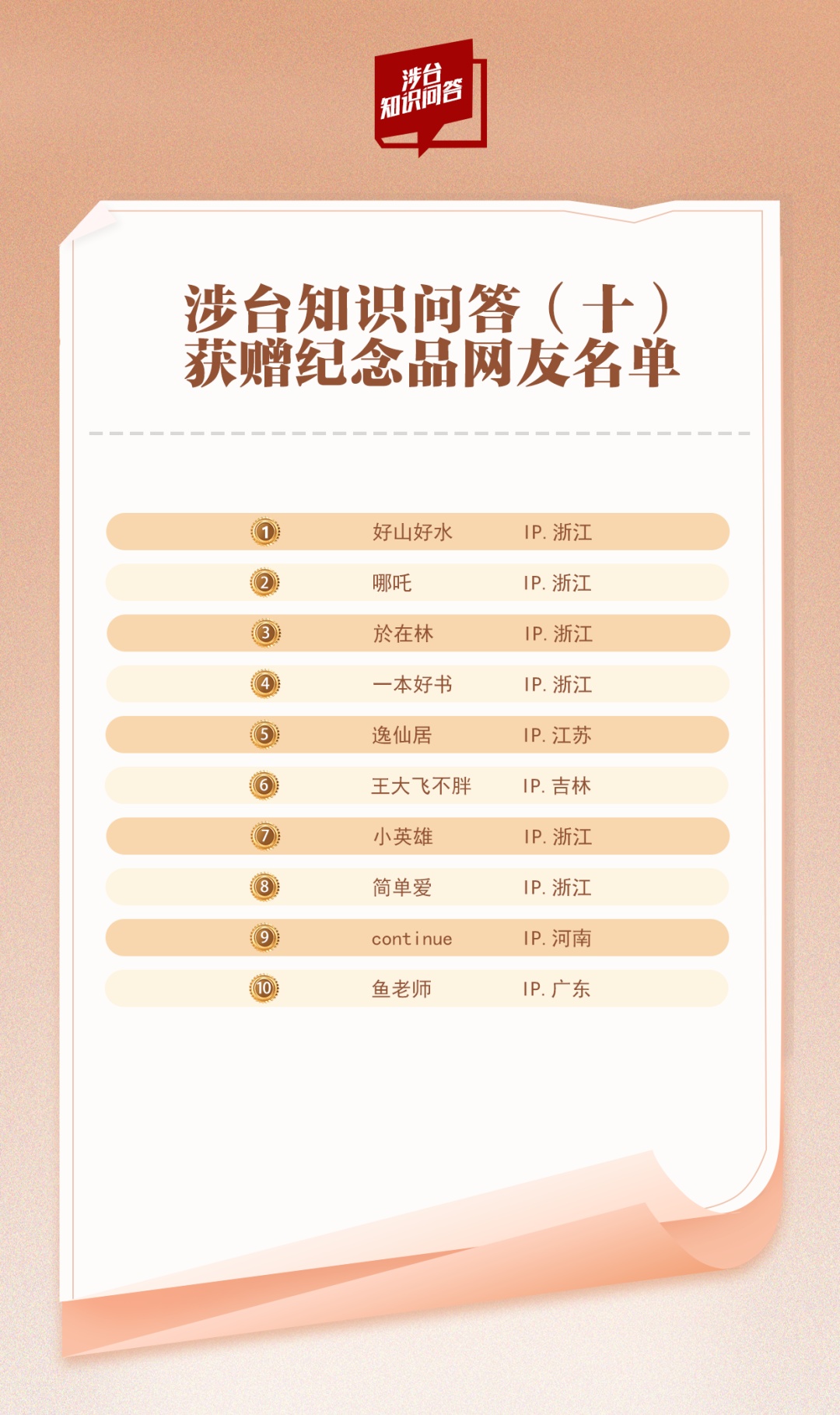 3 | 国务院台办公众号涉台知识问答(九)答案及获赠纪念品网友名单公布 |