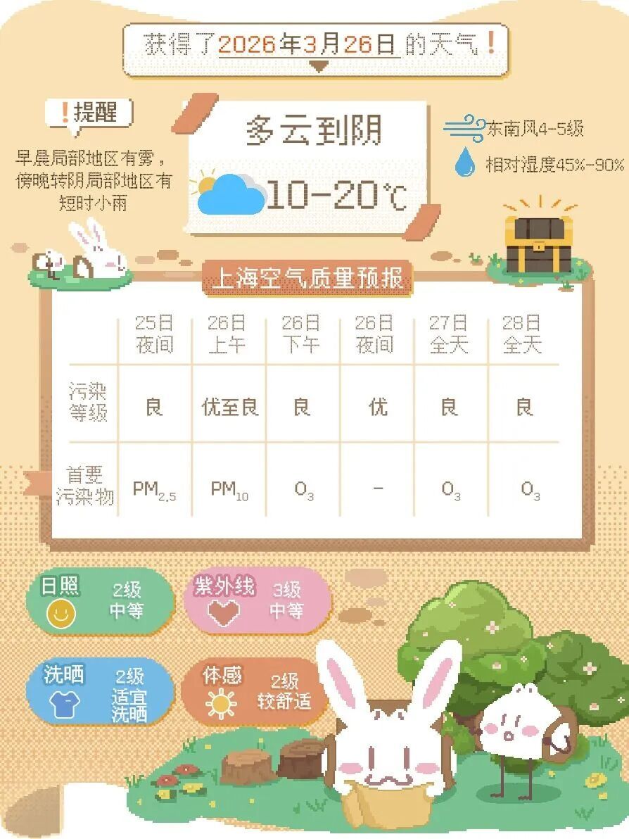 3月29日(周日):阴到多云有时有小雨转阴有阵雨,12℃~20℃