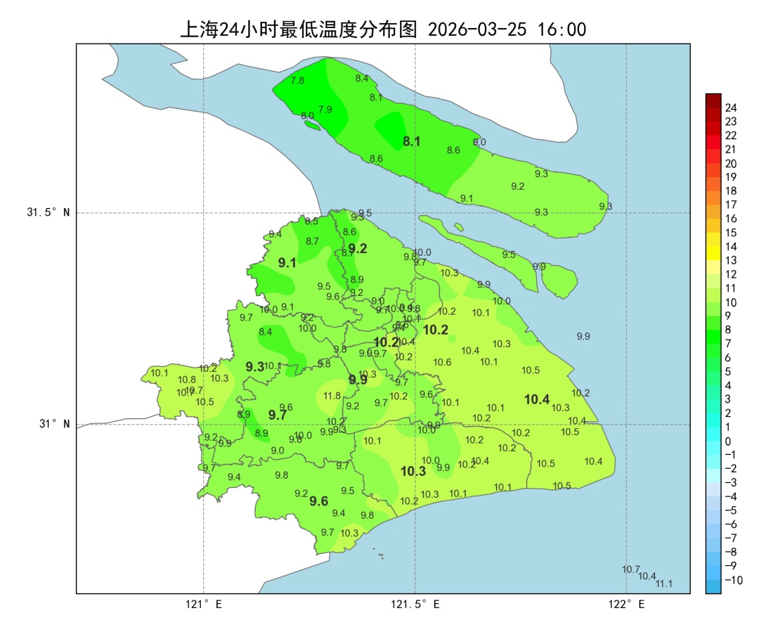 全市大部在8℃~11℃之间