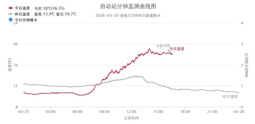 市区徐家汇站最高气温升至19.1℃