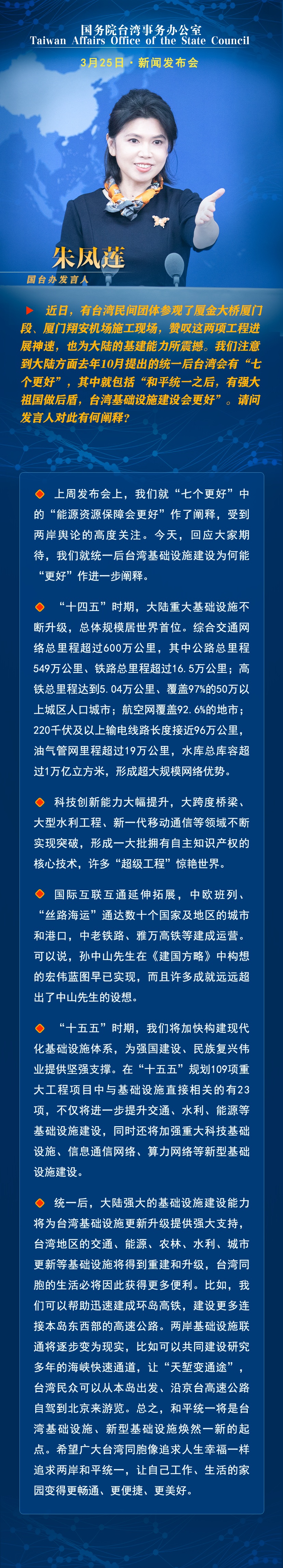 国台办:和平统一将是台湾基础设施焕然一新的起点