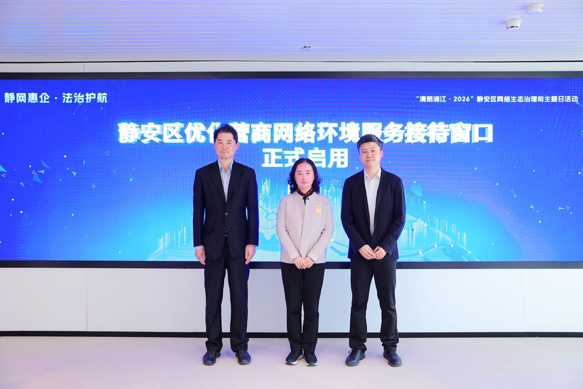 活动中,“静安区优化营商网络环境服务接待窗口”正式揭牌启用。该接待窗口设立于静安国际会客厅(南京西路1600号)6楼,是涉企侵权信息受理服务站(网信条线)、“守沪e站”(公安条线)、J·护网络空间站(检察条线)“三站联动”机制的线下服务阵地。今后,企业投诉受理可以在这个接待窗口“找得到门、见得到人”,真正实现线索联处、服务联动。