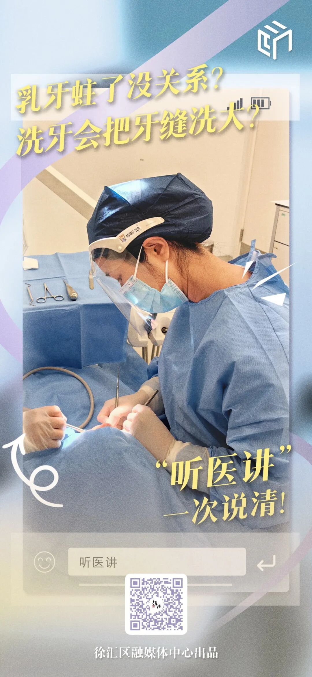 “牙疼不是病,忍忍就过去了。” “乳牙蛀了没关系,反正要换牙。” “洗牙会把牙缝洗大,千万别洗!” “牙龈出血?上火了,喝点凉茶。” 这些话,你是不是特别耳熟?甚至自己就说过? 我们总能在牙齿问题上展现出惊人的“忍耐力”——疼了忍,出血了扛,缺了牙拖着。好像只要不去看牙医,问题就不存在。但真相是:牙齿不会因为你的“将就”而自愈,只会因为你的“硬扛”而变得更糟。 为了帮大家搞清楚这些问题,我们将专访上海市徐汇区口腔医院口腔颌面外科副主任医师叶周熹。从智齿不疼要不要拔,到乳牙蛀了要不要管;从牙龈出血是不是上火,到种植牙是不是人人适合;从微创拔牙到底疼不疼,到网红护牙产品哪些是“智商税”,都是你平时想问又没来得及问的问题,也都是和你我息息相关的事。 徐汇区融媒体中心联合区卫健委推出的健康访谈栏目《听医讲》又要和大家见面啦!第九十九期节目邀请到了上海市徐汇区口腔医院口腔颌面外科副主任医师叶周熹。 《听医讲》名称取自上海话谐音“听伊讲”,邀请知名医生和相关专家,通过和主持人面对面交流直播的形式,为观众提供及时、专业、权威的资讯和医疗知识,帮助观众更好地了解自身的健康状况,及时采取有效的措施预防和治疗疾病。栏目为广大市民提供一个了解健康、认识医生、获取医疗资讯的平台。节目内容涵盖了常见疾病科普、健康生活方式、医疗政策解读等方面,以提高全民健康素养。节目通过“上海徐汇”视频号、徐汇通App直播。 叶周熹,副主任医师,口腔医学硕士,毕业于上海交通大学医学院,现任职于上海市徐汇区口腔医院口腔颌面外科,深耕困难阻生牙相关手术领域。兼具临床实践与学术研究能力,现任上海市口腔医学会牙及牙槽外科专委会委员、上海市口腔医学会口腔颌面外科专委会青年委员,主持2023年徐汇区局级课题、2021年院级课题,以第一作者身份发表SCI论文十余篇。 “上海徐汇”视频号 徐汇通App 2026年3月26日 14:00 大家若想就本期话题提问,可在文末留言。主持人将把网友们关注的问题带进直播间,请嘉宾进行解答。 1.新用户可通过识别下方二维码,进入网页,跳转下载“徐汇通”App。 2.通过“华为应用市场”“苹果应用市场”及“应用宝”搜索“徐汇通”App下载,并按照系统提示完成注册。