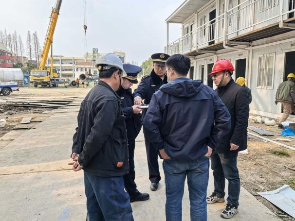 走进施工现场,执法队员的目光更多落在细节之处:围挡是否规范到位、扬尘控制是否有效、施工噪声有没有对周边产生影响、渣土运输是否合规有序……一项项看似琐碎的问题,背后都关系着校园周边的环境品质与安全底线。与此同时,消防设施是否齐备、警示标识是否清晰醒目,也被逐一纳入检查范围。