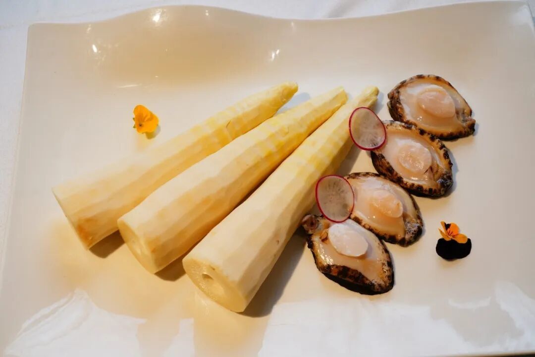 春笋充分吸饱鲍鱼的鲜汁与酱汁的浓醇,鲍鱼弹牙爽滑,山珍与海味的极致碰撞,让春日的鲜,在舌尖层层绽放。