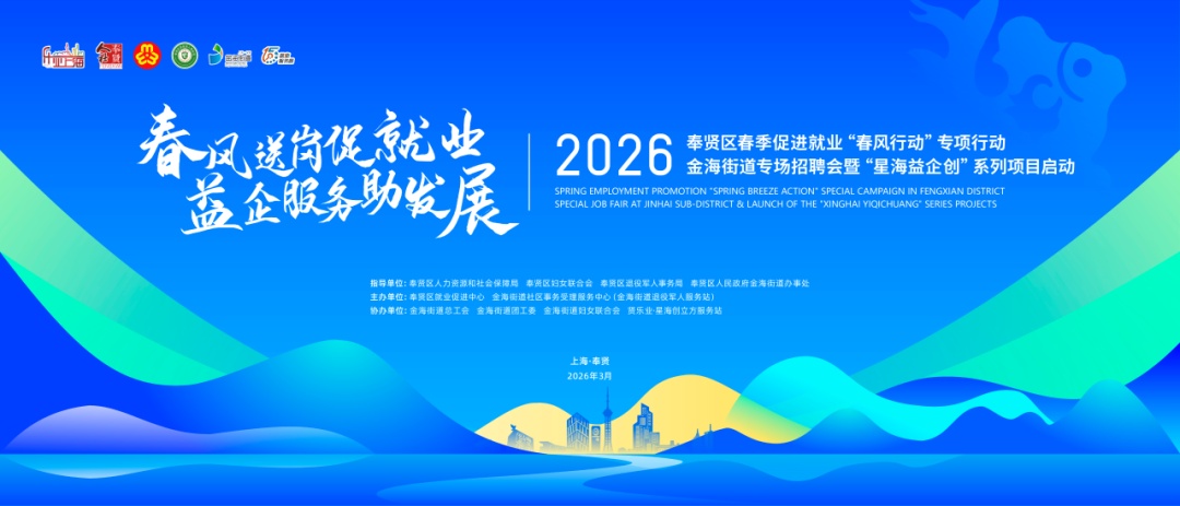 为全力稳就业、保用工、促发展,金海街道将于3月28日举办2026奉贤区春季促进就业“春风行动”专项行动金海街道专场招聘会。