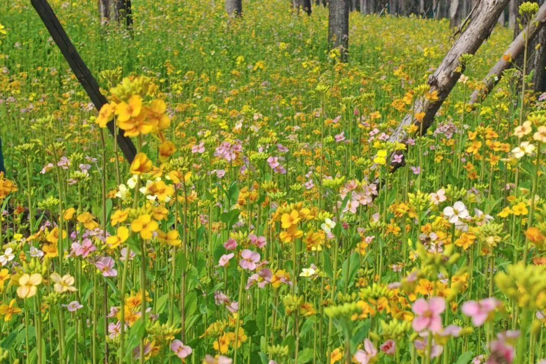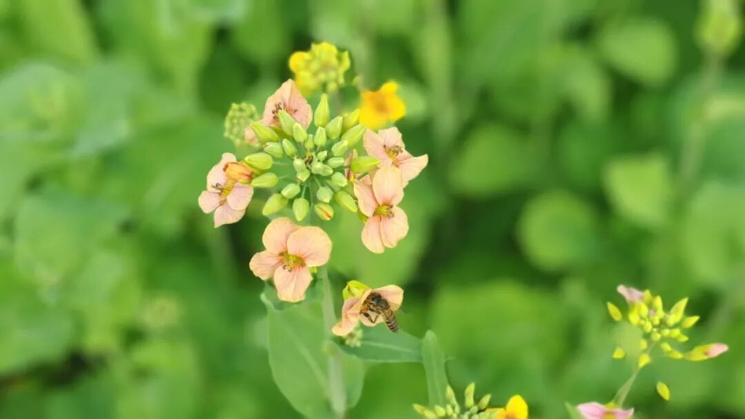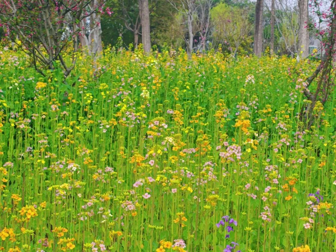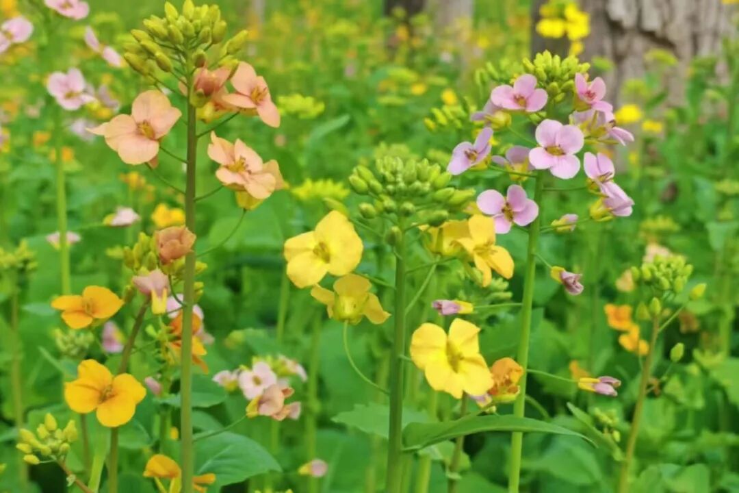 “油菜花竟然有粉色的,真的是第一次看见,感觉特别新奇。”一位在花田拍照的市民感慨道。与传统金黄色油菜花不同,这片油菜花田色彩斑斓,远远望去,如同一幅铺展在绿道边的油画,吸引了不少路人停下脚步,掏出手机记录这难得一见的美景。