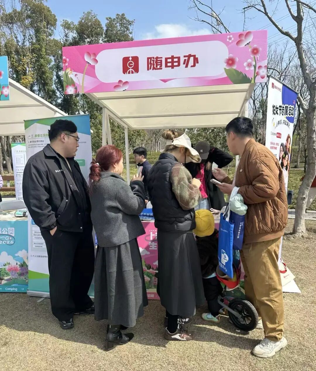 3月,普陀春光公园樱花如云、青草如茵,“2026年上海环城公园生活季·春光市集”在此展开。3月21日、22日,“随申办市民云”的魔法口袋摊位成为这场春日盛会中人气最旺的“打卡点”。