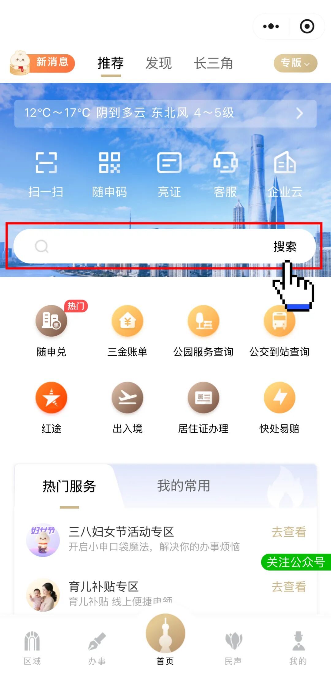 打开“随申办市民云”(APP/微信小程序/支付宝小程序),首页搜索进入“乐业上海第一站”专区。