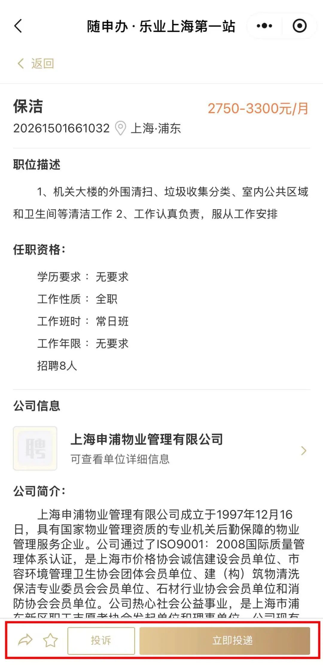“乐业上海第一站”为劳动者和用人单位提供公益、免费、专业、权威的公共就业服务,这里汇集沪上众多招聘企业、岗位及各类招聘会信息,动动手指,在线一键投递简历!
