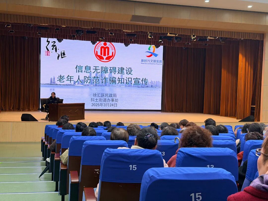 3月24日,一场名为“信息无障碍建设,老年人防范诈骗知识宣传”的专题讲座,特邀徐汇区斜土路街道民警朱若冰担任主讲,吸引了辖区内百余名老年人参与。