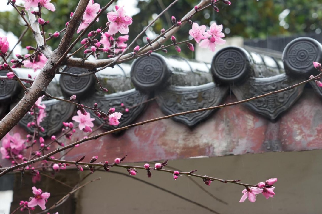 随着春意渐浓,又到了桃花盛开的时节。在普陀区桃浦公园里,各色桃花已悄然缀满枝头、次第绽放。 桃浦公园位于古浪路南侧、桃浦西路东侧,地块呈南北狭长状,总占地面积约1.5万平方米。公园采用江南古典园林风格,园内建有一座重檐石亭和一处临水的六角木亭,亭台水榭与春花相映成趣,成为市民游客休憩赏景的好去处。市民陈碧君有时会来公园跑步:“公园不大,但很精致。我喜欢春天来这里跑步,有种在‘小江南’的感觉。” 桃浦公园以桃花为特色,园内共种植了五宝碧桃、人面碧桃、帚桃、绛桃、垂枝桃、果桃、花桃、红叶桃等13个品种的桃树,总数达370余株。目前,部分品种已进入盛花期,粉白、深红、淡粉等各色花朵挂满枝头,吸引游人频频驻足,举起手机、相机定格春日美景。 在绿化布局上,公园不仅种植了华山松、银杏等多种景观树种,还搭配了毛竹、紫竹等多种竹类植物,形成了清雅静谧的绿化环境。此外,园内还分布着矾根、佛甲草、扶芳藤、金叶石菖蒲等地被植物,进一步丰富了林下景观层次。 随着各类桃花陆续进入观赏期,园内不同品种桃树的花期略有错开,整体观赏时段可延续较长一段时间。目前,桃浦公园已迎来春日赏花季,这片隐藏在城市一隅的桃花绿地,正以满园春色静待市民前来赏玩。 公园开放时间:05:00-21:00 地址:普陀区桃浦西路1018号 公共交通:古浪路地铁站4号口步行约200米 记者、短视频制作:吴凡 编辑:吴锴