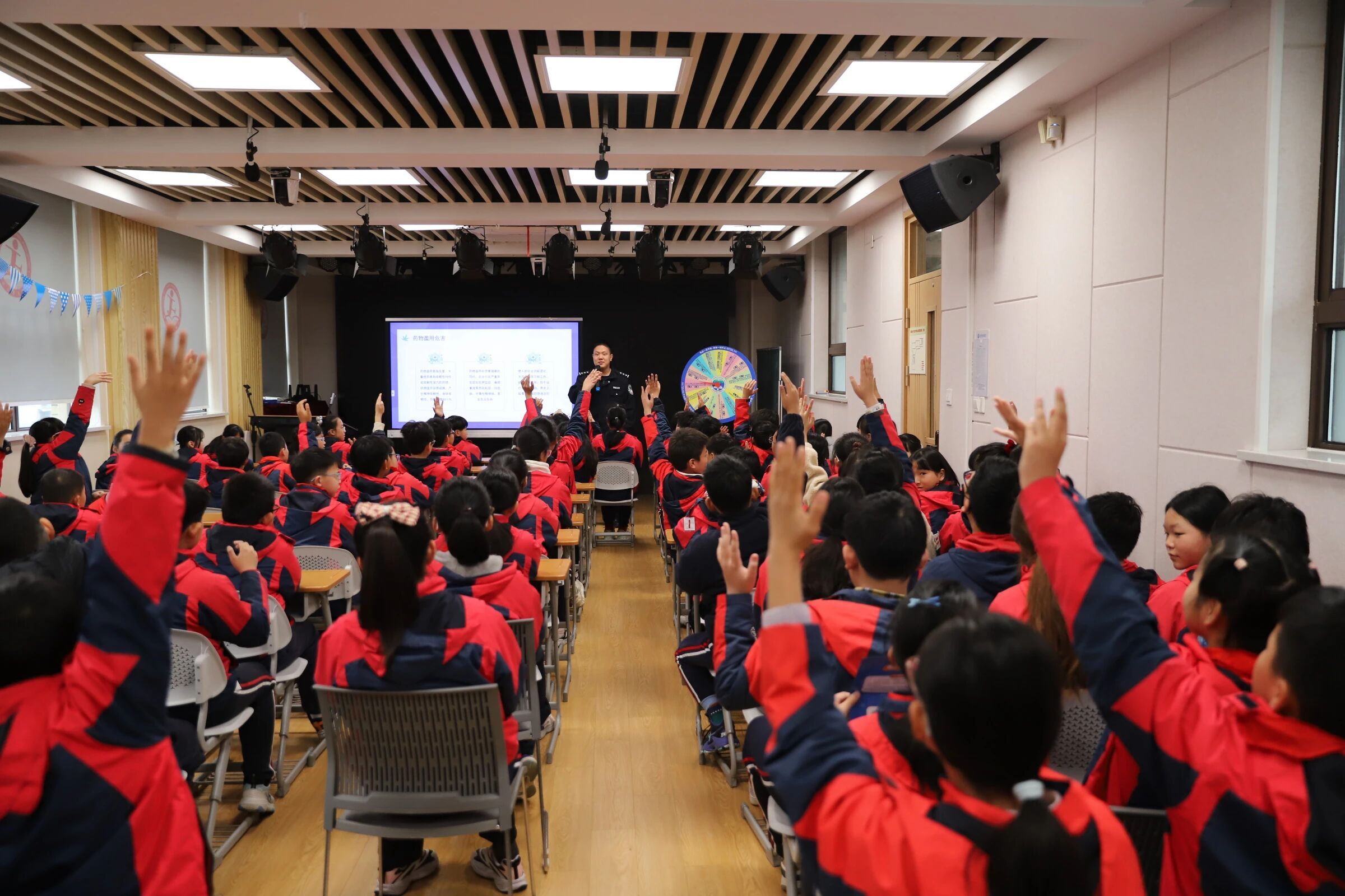 为纵深推进“平安睦邻”品牌建设,进一步加强辖区青少年毒品预防教育工作,切实筑牢校园禁毒“防火墙”,增强在校学生识毒、防毒、拒毒意识,全力守护未成年人健康成长,近日,临汾路街道平安办充分发挥统筹协调作用,化身资源链接的“黏合剂”,联合上海市强制隔离戒毒所,共同走进上海市景凤路小学,为师生们送去了一堂别开生面的禁毒宣传课。