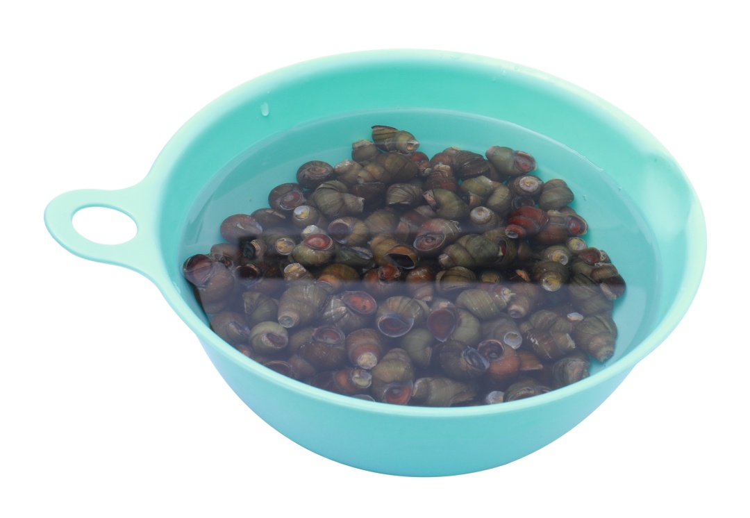 从市场上买回已剪尾的螺蛳要泡在水里用清水养上半天,水量尽可能大一些,至少是螺蛳量的两倍。