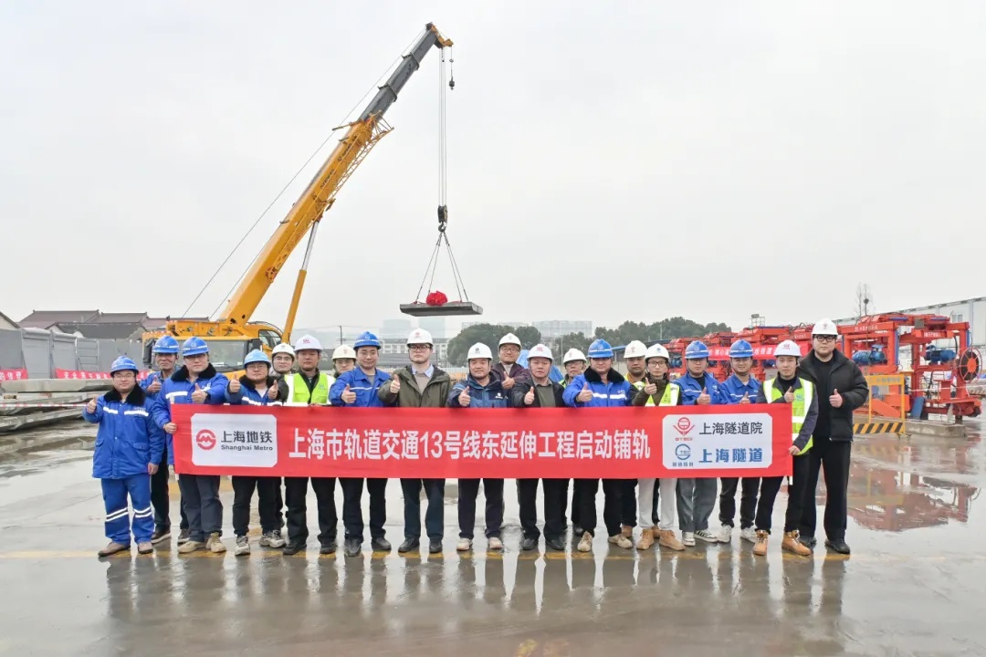 近日,上海市轨道交通13号线东延伸工程全线铺轨施工在王家浜中间风井铺轨基地正式启动。