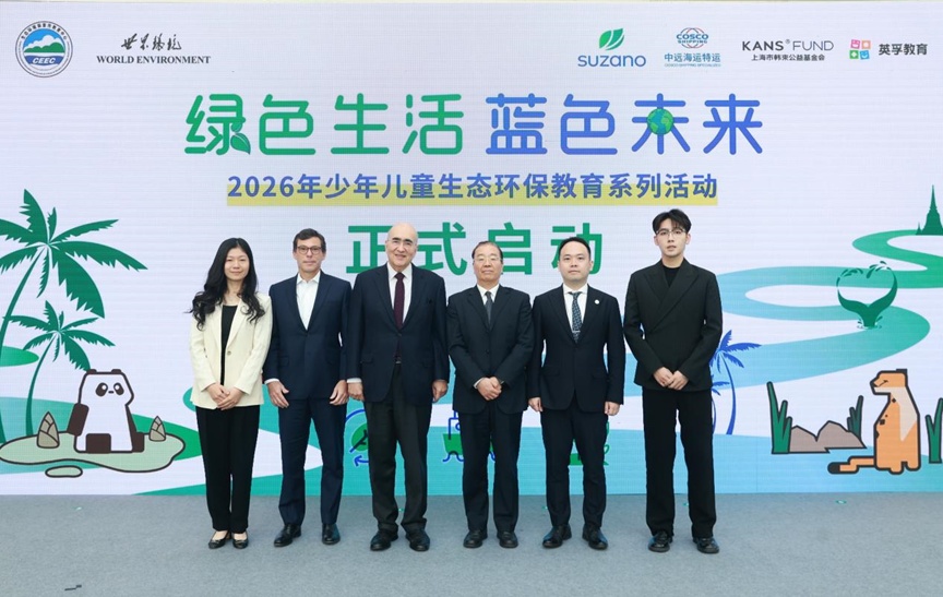 近日,2026年“绿色生活 蓝色未来”少年儿童生态环保教育系列活动在北京中国妇女儿童博物馆启动。生态环境部宣传教育中心主任闫世东,巴西驻华大使Marcos Galvao,书赞桉诺全球首席执行官João Alberto Abreu等领导嘉宾,与80余名少年儿童代表齐聚现场,共赴绿色之约,携手绘就生态美好未来。