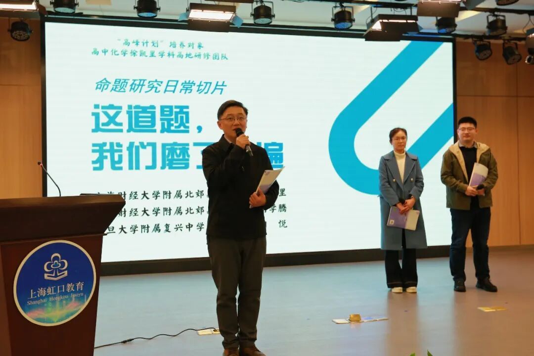 上海市第五期“双名工程”“高峰计划”培养对象、虹口区高中化学徐凯里学科高地研修团队带来教研片段《这道题,我们磨了三遍》。团队以一道题的三次打磨为切入点,展现了反复琢磨、精益求精的专业精神,让在场人员真切感受到梯队传承中的经验传递与教师成长。