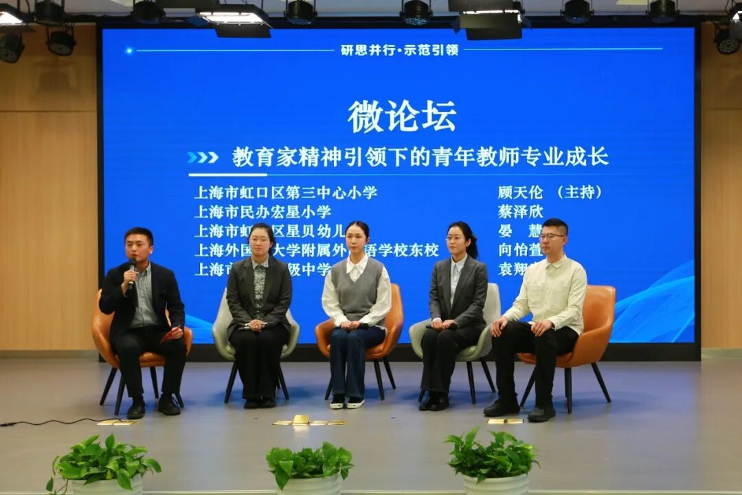 此外,虹口区青年教师成长营成员围绕“教育家精神引领下的青年教师专业成长”主题,带来微论坛分享。青年教师们结合“三力”沉浸式研修项目,畅谈成长感悟、分享探索心得,尽显朝气蓬勃、笃行实干的精神风貌,展现出虹口青年教师培养工作的扎实成效。