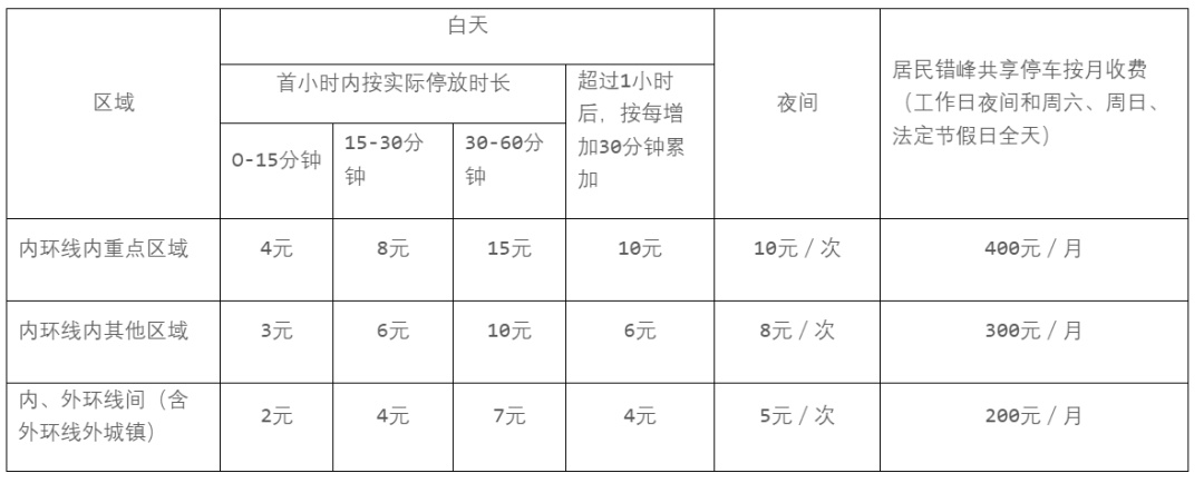 注:1.有关白天和夜间的具体时段以道路停车收费标志牌公示的时段信息为准;