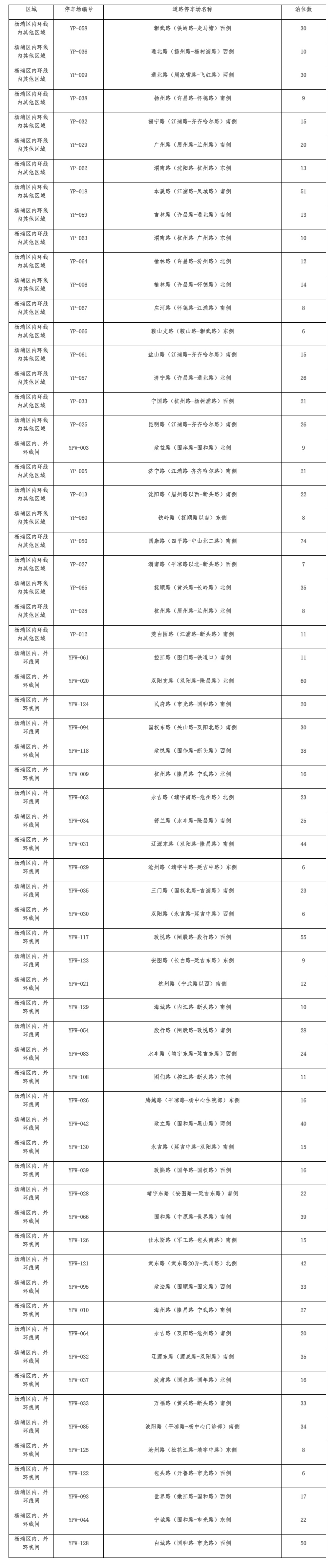 道路停车场清单(共66处)
