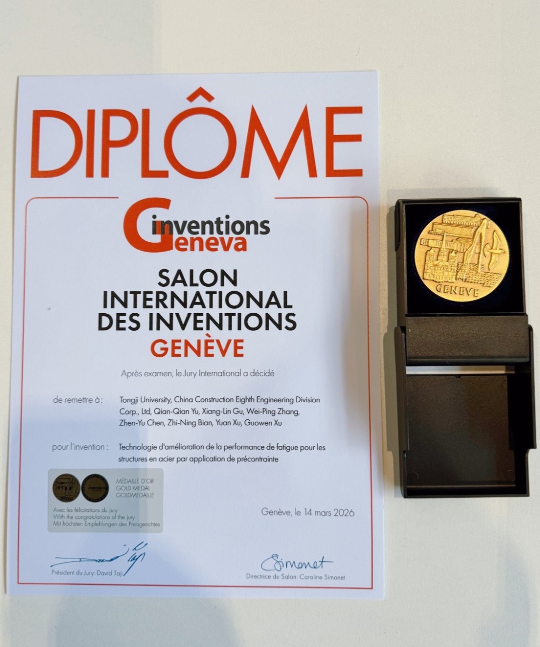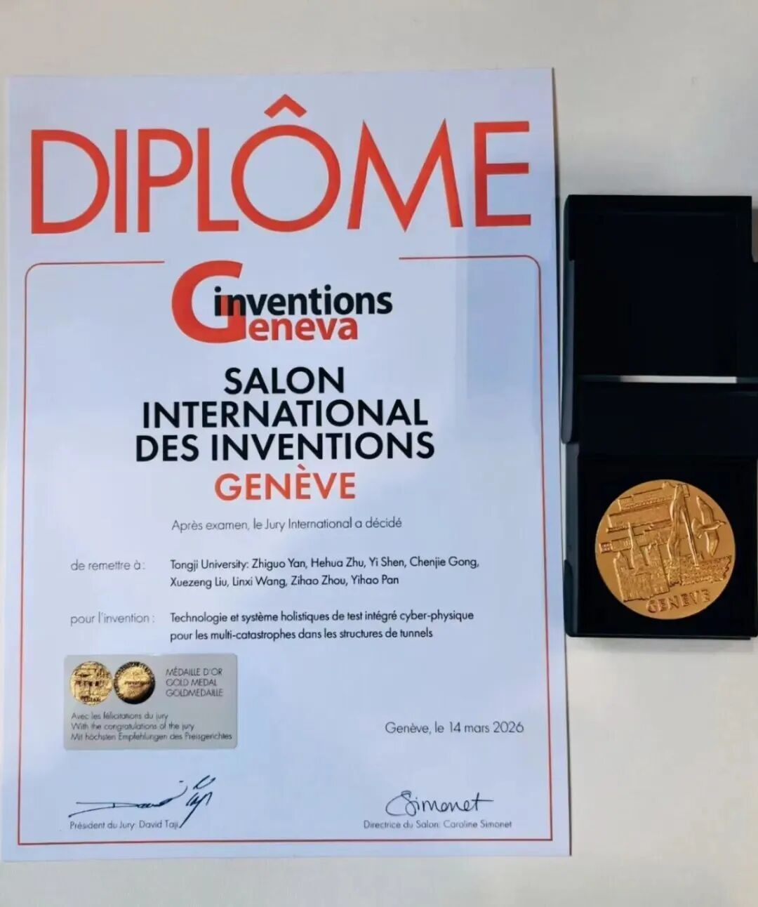 在近日于瑞士日内瓦落幕的第51届日内瓦国际发明展上,同济大学2项成果斩获展会最高级别奖项“评审团特别嘉许金奖(Gold Medal with the Congratulations of the Jury)”。该奖项被誉为“金奖中的金奖”,是展会最高荣誉,代表着国际对该技术创新性、产业化价值的高度认可。