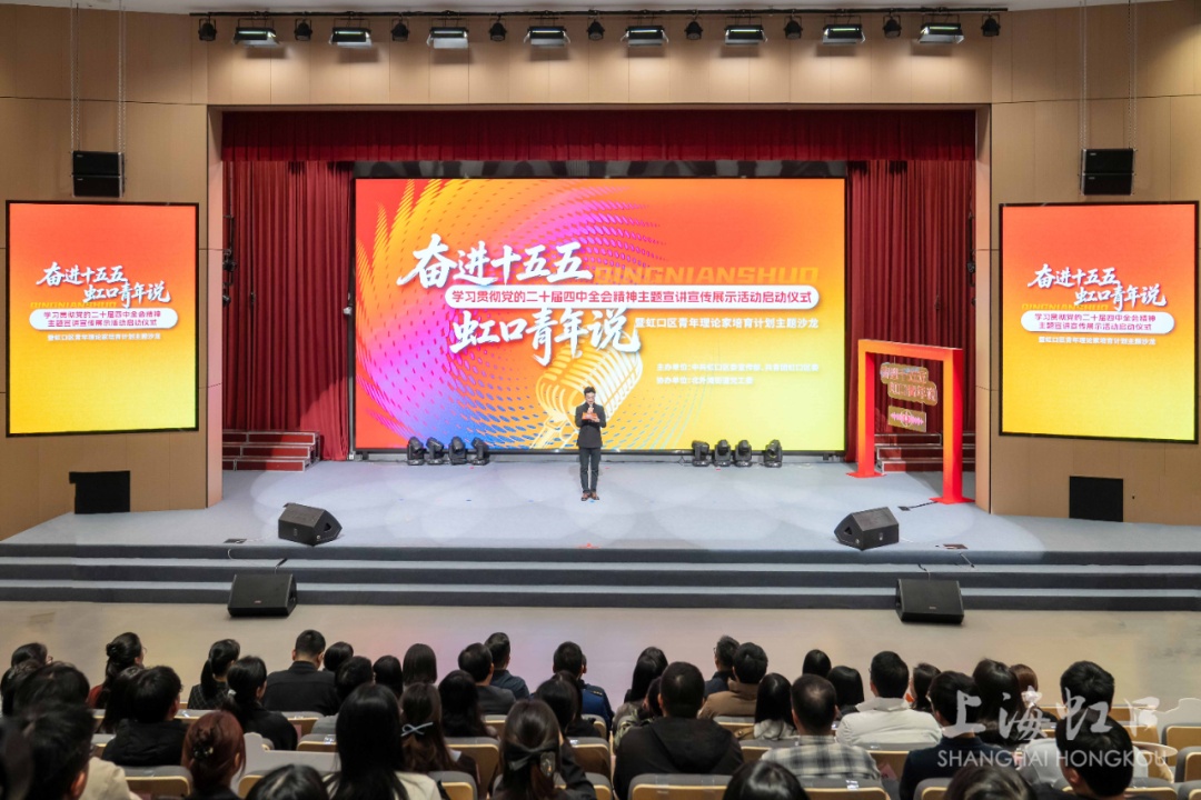 “同志们,今日会议能够在这里召开,是经过反复斟酌才定下来的……”舞台上,身穿粗布长衫的宣讲员动情演绎,将听众带到了百年前中共四大召开的现场。这样的情景宣讲,让红色历史可感可触,让理论宣讲变得生动鲜活、直抵人心。3月26日下午,“奋进十五五、虹口青年说”学习贯彻党的二十届四中全会精神主题宣讲宣传展示活动启动仪式暨虹口区青年理论家培育计划主题沙龙活动在北外滩街道社区文化活动中心举行。本场活动通过形式多样、立足实践的示范宣讲,以青春之声传递奋进“十五五”力量。