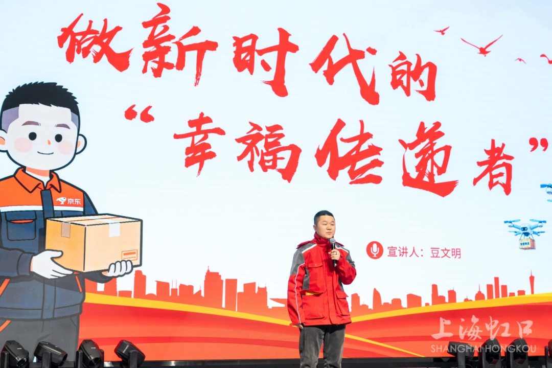 “虹口,真的在用力拥抱每一个认真生活的人。”虹口区“新质之声”新兴领域宣讲团成员、京东快递东宝兴路营业部站长豆文明在宣讲中这样感慨。从八年前来沪闯荡的外来客,到如今被街坊邻里亲切唤一声“豆站长”,他逐渐在虹口找到了归属感、认可感,也开始把自己感受到的温暖通过为人民服务加倍传递出去。