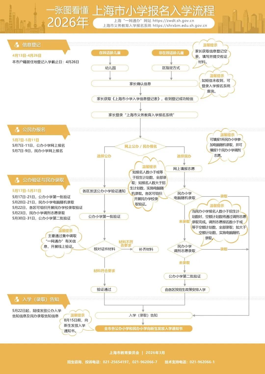 3月26日,上海市教委公布了《2026年本市义务教育阶段学校招生入学工作的实施意见》,政策与2025年保持一致,体现阳光招生、便民服务、不挑生源、保障公平的导向。