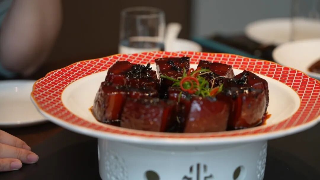 要说嘉定人餐桌上的压轴硬菜,红烧肉绝对榜上有名。第一道热菜便是梅干菜红烧肉。“没错,就是‘小辰光的味道’,以前只要家里做红烧肉,我就停不下来,能炫两碗饭!”