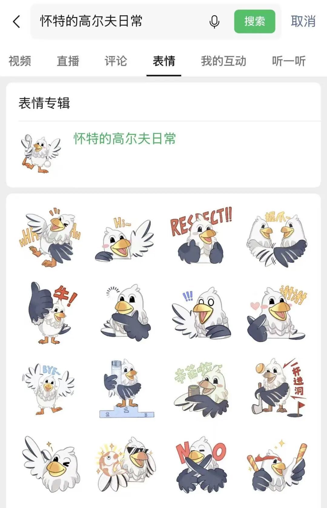 即可一键拥有“怀特的高尔夫日常”表情专辑!