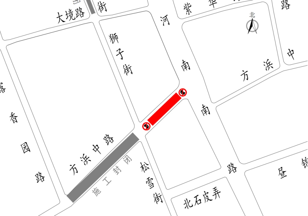 3月27日夜间起,施工路段将分阶段进行围场施工,施工路段将采取禁止机动车、非机动车及行人通行的管理措施(除沿线单位外)。施工期间,机动车、非机动车及行人可通过河南南路—大镜路/北石皮弄—狮子街/松雪街进行相应绕行。