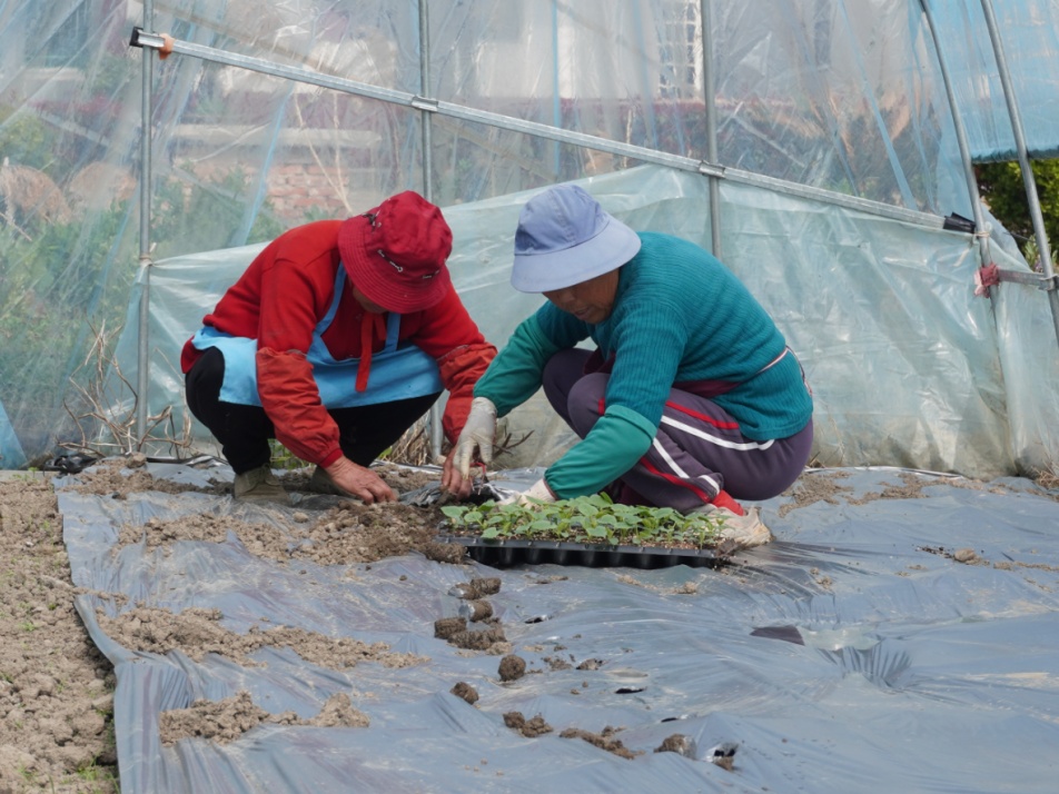 走进上海亭林雪瓜种植基地,工作人员正将雪瓜苗移栽进大棚。基地负责人吴士忠介绍,雪瓜移栽需地面温度达15度左右,基地种植面积200亩,3月初启动移栽,目前已完成120亩。
