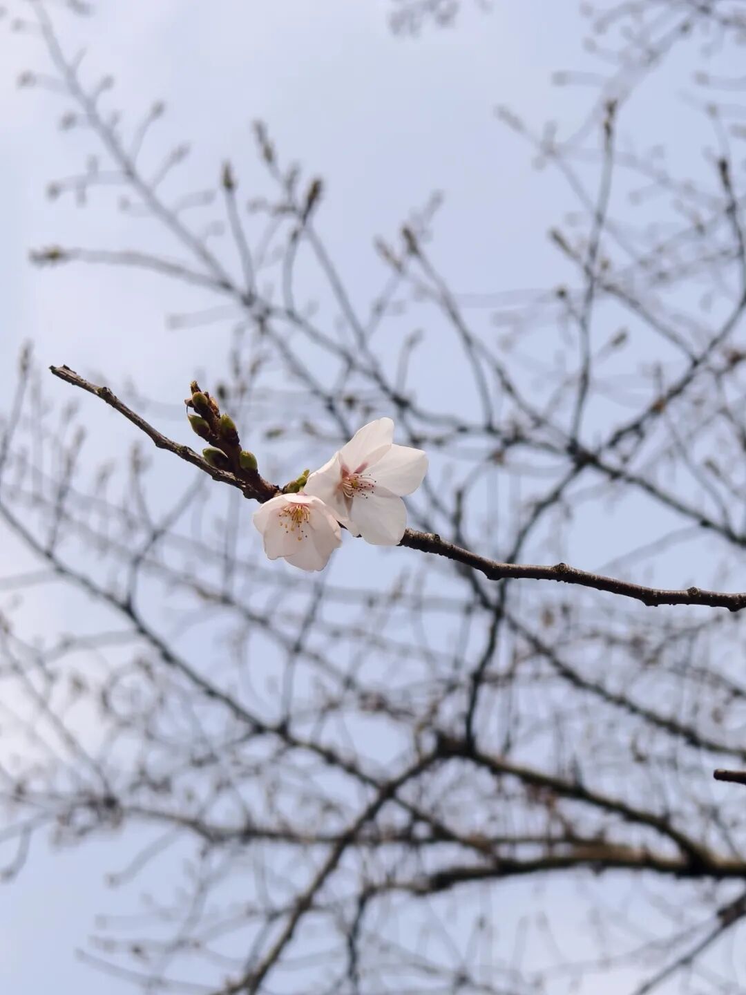 抵达亭林驾校的茂园,一眼望去,枝头还没有出现往年“粉雪漫天”的热闹景象,大部分樱花树仍含苞待放。只有零星几朵“探出头”,显得格外娇俏,微风拂过轻轻摇曳,虽不及盛花期的震撼,却也藏着春日独有的温柔。偶尔有市民驻足拍照,记录下这难得的“早樱限定”美景。
