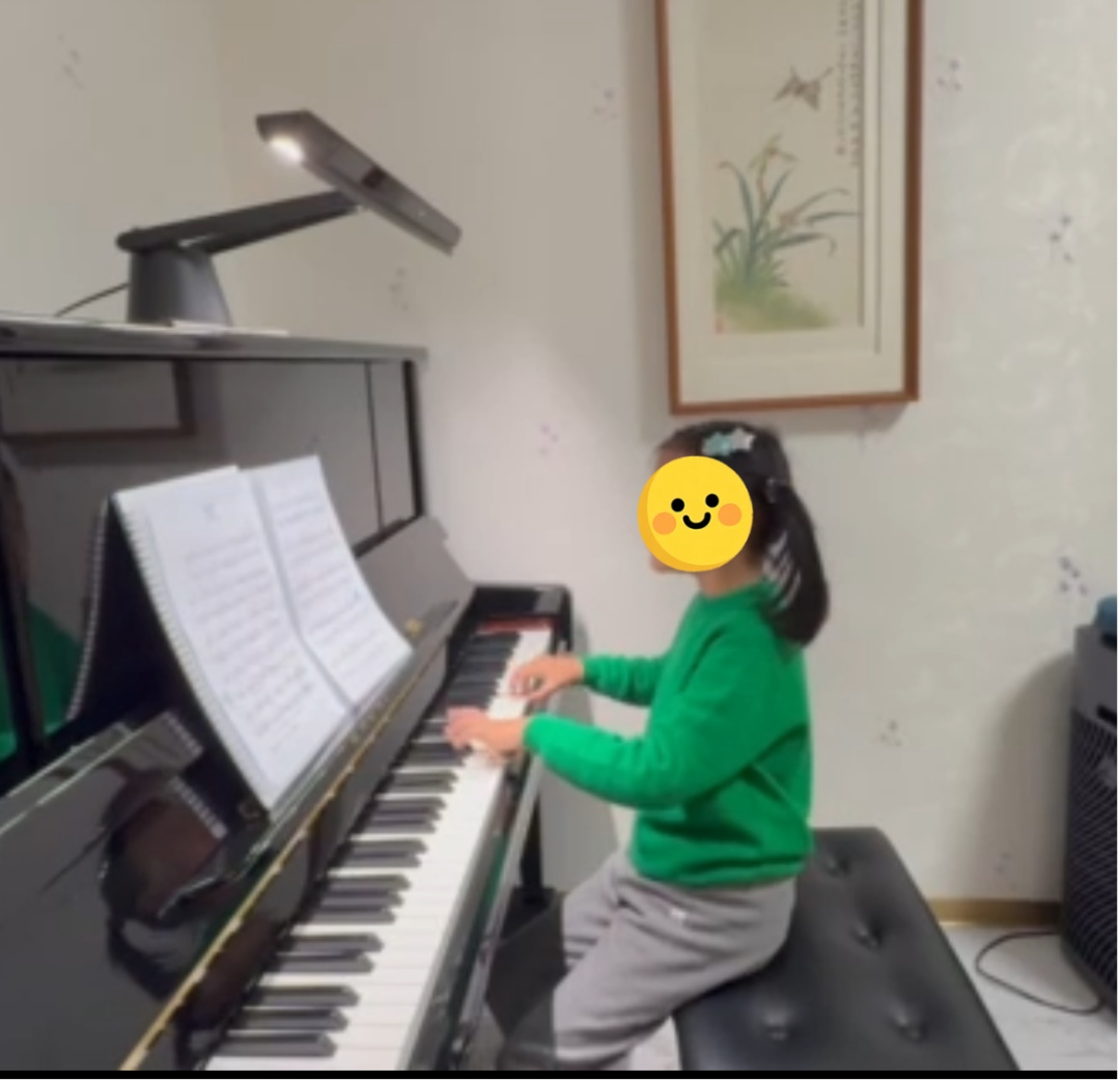 如今,晏之已经回到家乡,恢复了正常的学习和生活。妈妈发来一段视频:晏之端坐在钢琴前,手指在黑白键上轻快地跳跃,阳光洒在她的侧脸上,耳朵上只留下一道淡淡的痕迹。(图4:晏之回家后弹钢琴)