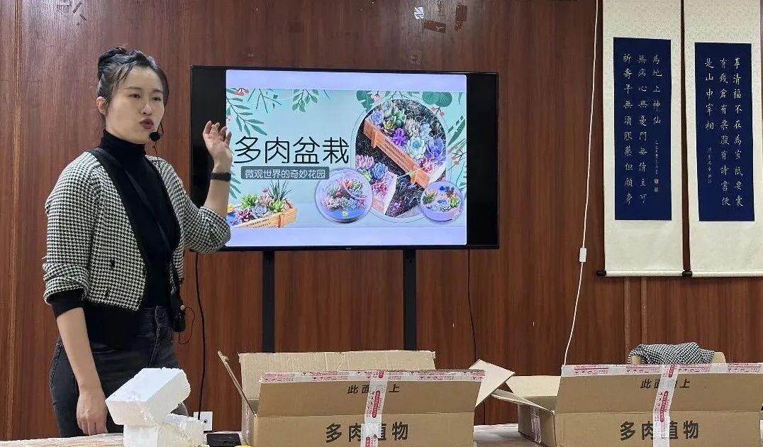 其中一场活动以“方寸之间——筑梦心灵的治愈森林”为主题,在专业绿植老师蒋瑛的带领下,社区居民们齐聚一堂,学习制作微景观生态瓶。蒋老师向大家科普了多肉植物的生长习性与养护要点,例如景天科多肉储水能力强,而番杏科多肉则喜充足光照。她还提醒大家,若发现叶片出现黑斑或蚜虫,可用棉签蘸取稀释后的多菌灵溶液擦拭处理。